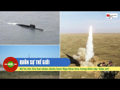 Bộ Quốc phòng Nga vừa đăng video bộ ba răn đe hạt nhân gồm tên lửa đạn đạo hạt nhân chiến lược RS-24 Yars, tàu ngầm Tula phóng tên lửa hạt nhân R-29 và oanh tạc cơ Tu-95MS khai hỏa tên lửa trong diễn tập hạt nhân chiến lược Grom.